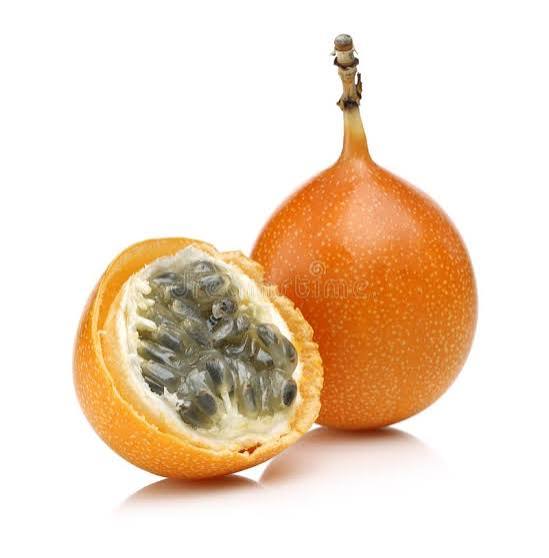 La granadilla es una de las frutas más dulces y apreciadas de la familia de las pasifloras. Su cáscara dura y de color anaranjado protege una pulpa gelatinosa con semillas negras comestibles. A diferencia de la maracuyá, su sabor es mucho más suave y dulce, lo que la hace ideal para niños y adultos que buscan una fruta fresca y fácil de consumir. Se suele abrir con las manos y comer directamente con cuchara, lo que también la convierte en una fruta práctica y atractiva.
